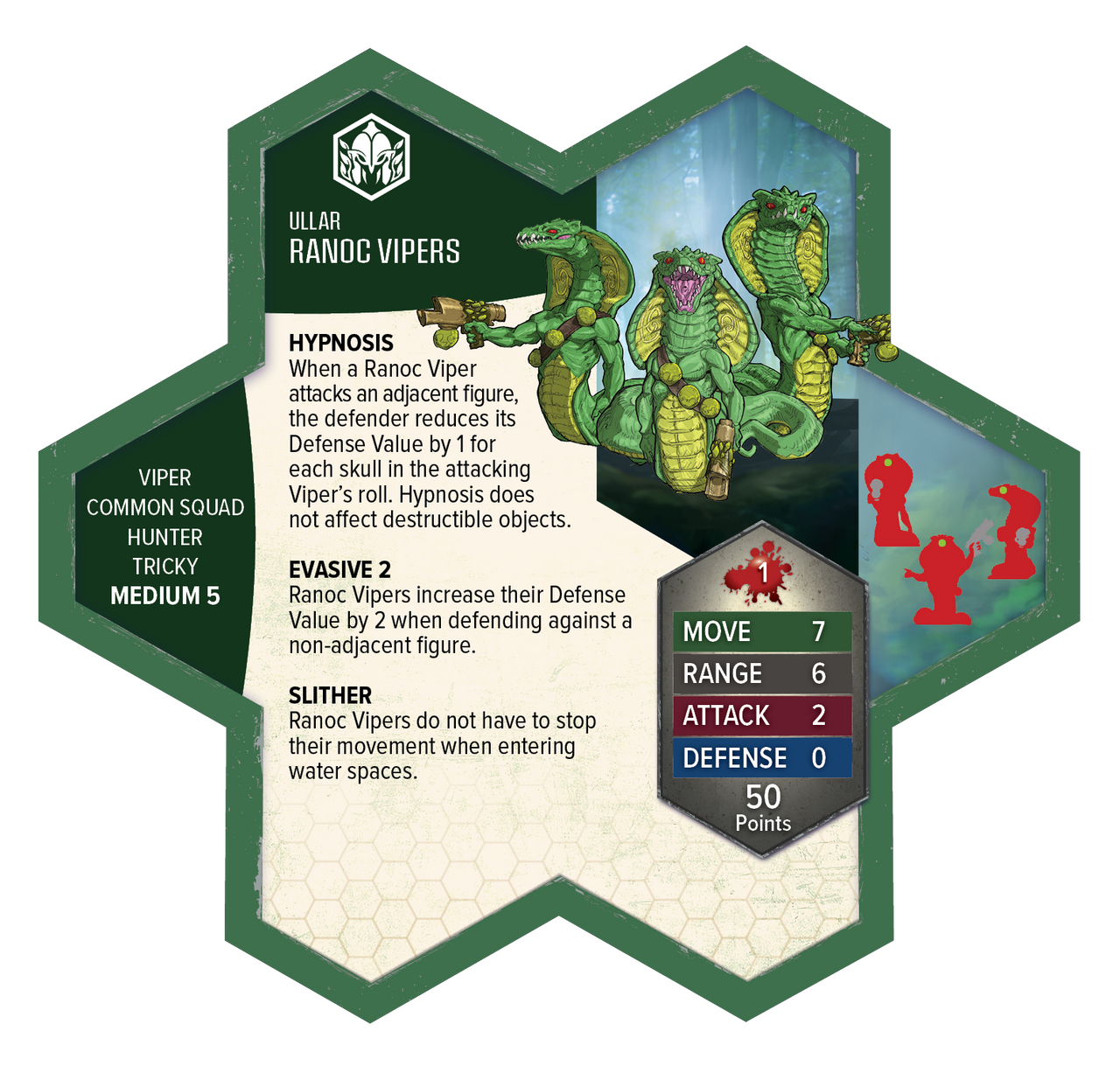 - The Ranoc Vipers reduce enemy defense with Hypnosis while slipping through terrain with ease using Slither.