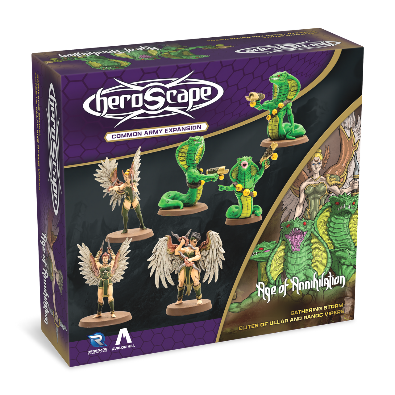 This expansion includes two 3-figure Common Squads. The highly detailed, pre-assembled miniatures and 2 Army Cards are fully compatible with all Heroscape Battle Boxes, Master Sets, and Expansions. Ullar’s elite Kyrie warriors strike with deadly precision, coordinating their attacks to overwhelm foes. When an Elite of Ullar is wounded, other unengaged Kyrie can swiftly move to respond, keeping your army in relentless motion. On the battlefield, Ranoc Vipers strike with hypnotic attacks that weaken enemies, move effortlessly across water, and dodge ranged assaults with uncanny agility.