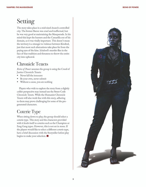 - A coterie of six powerful, pre-generated characters