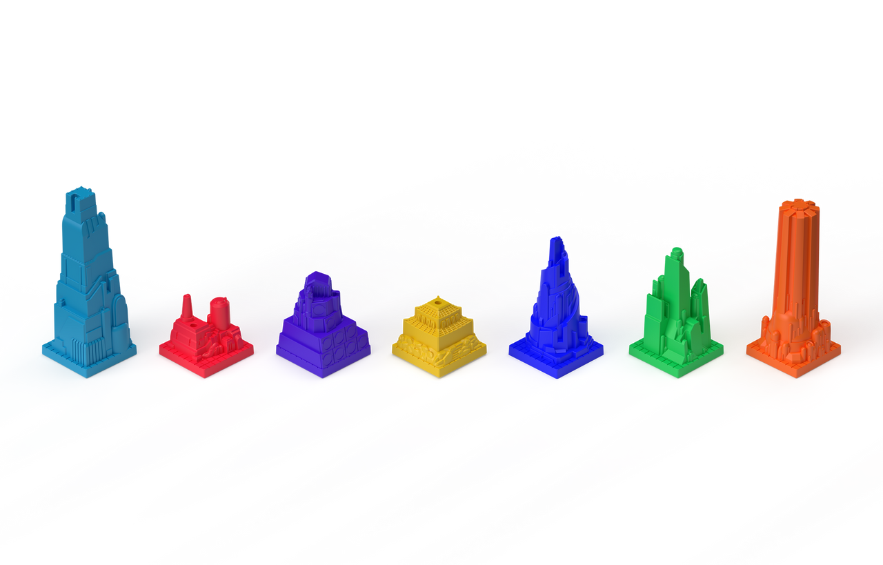 - Plastic board, building tiles, and headquarters! Updated board size, 9x12 space grid with space designations printed on the board.